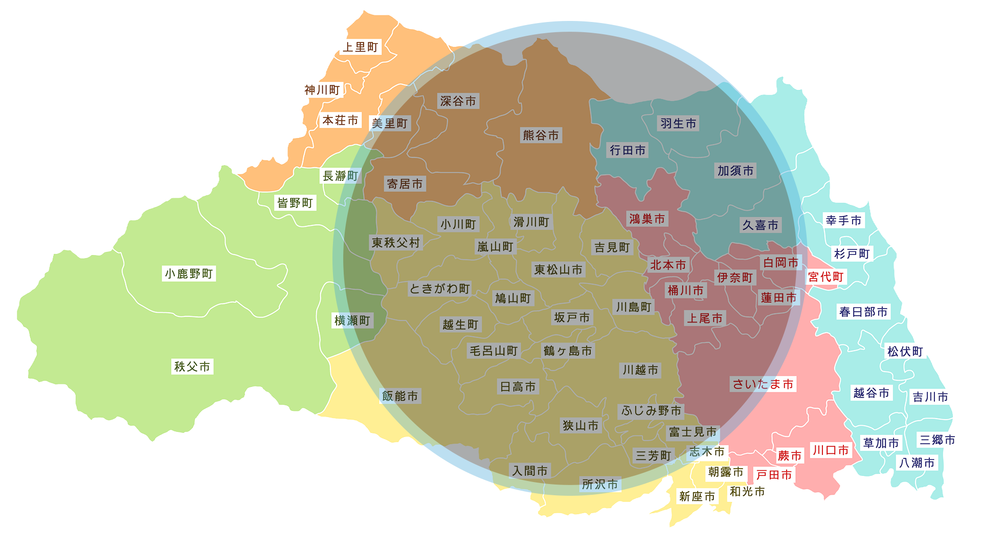 埼玉県(目安:東松山市から車で約1時間圏内)